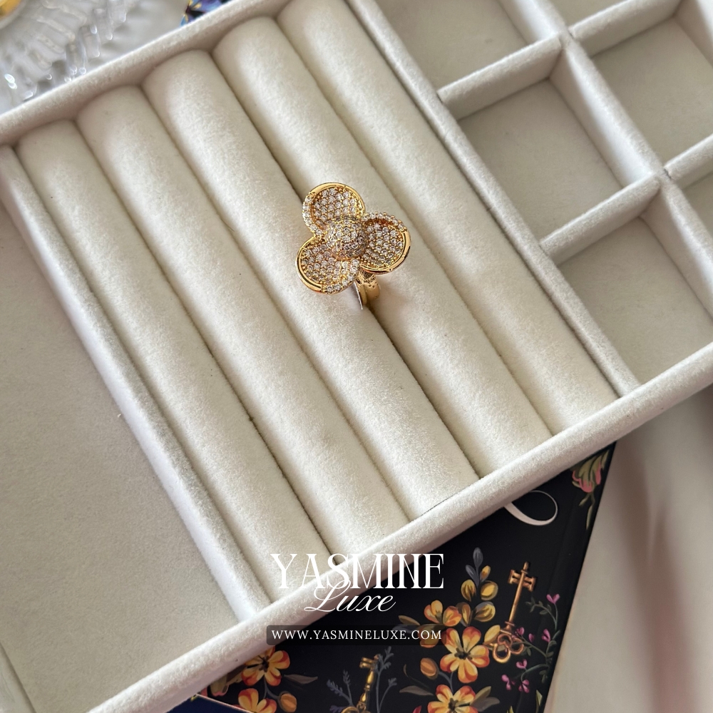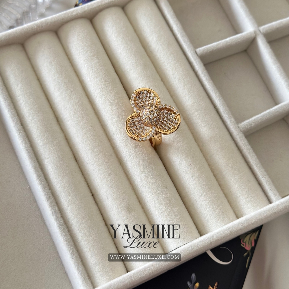 A delicate floral diamond shines on a luxurious gold band. Crafted with ornate petals, it exudes timeless elegance. Perfect for gifting or special occasions like weddings.