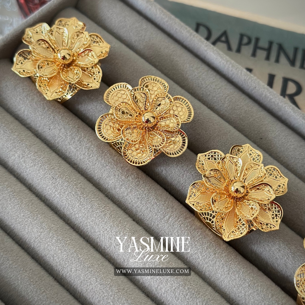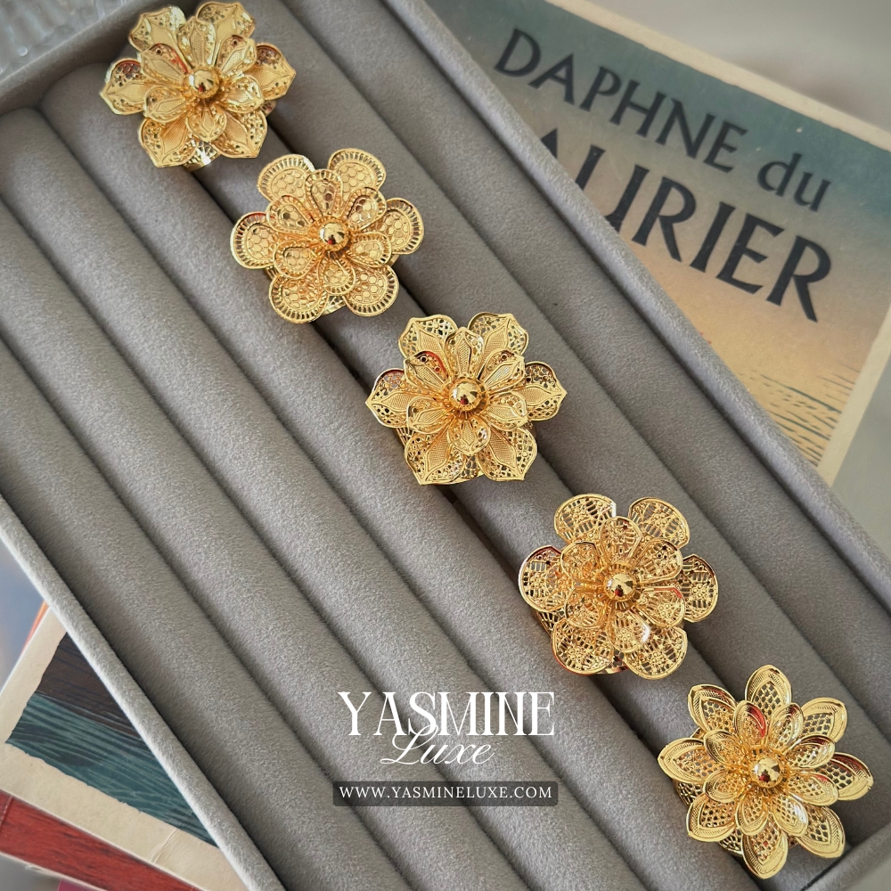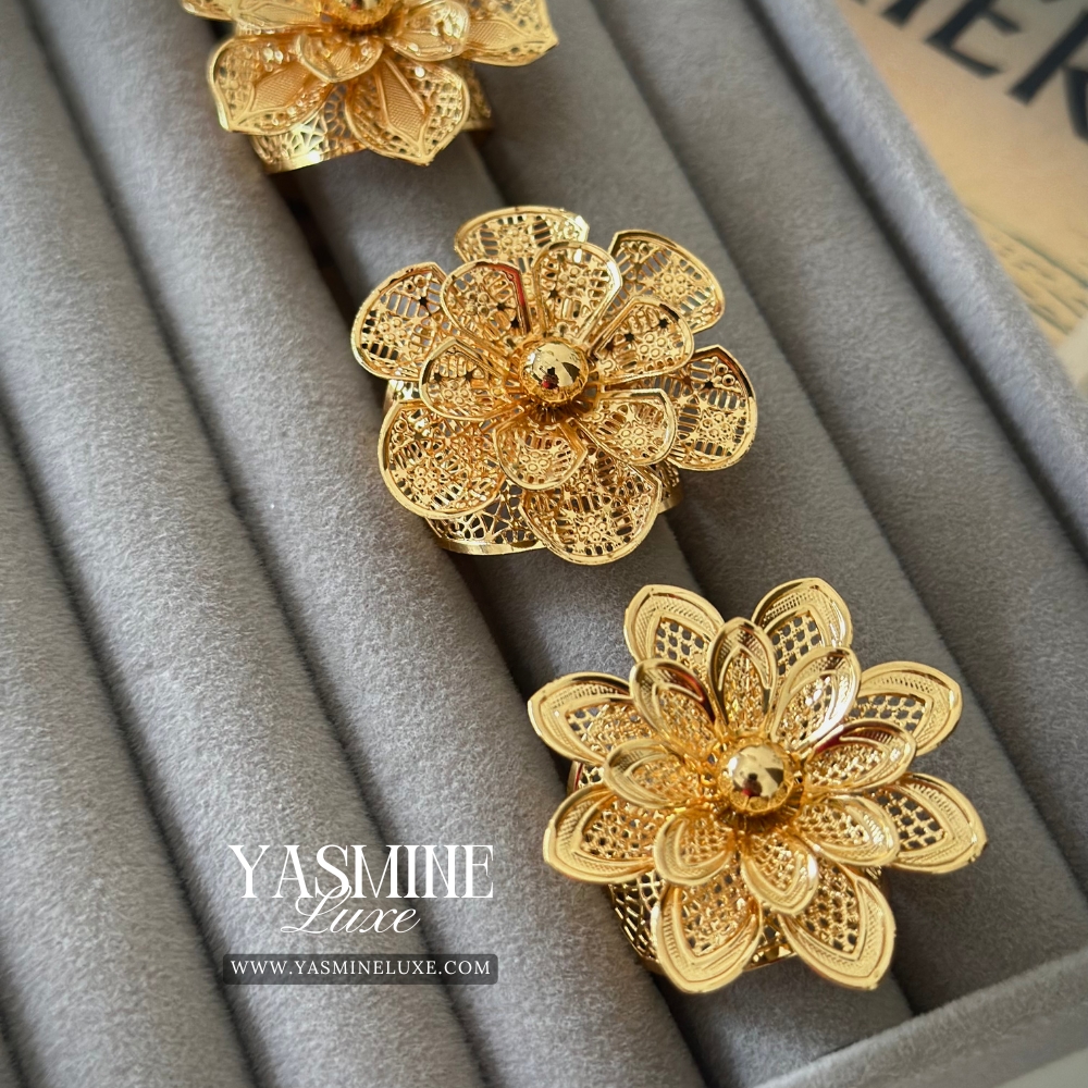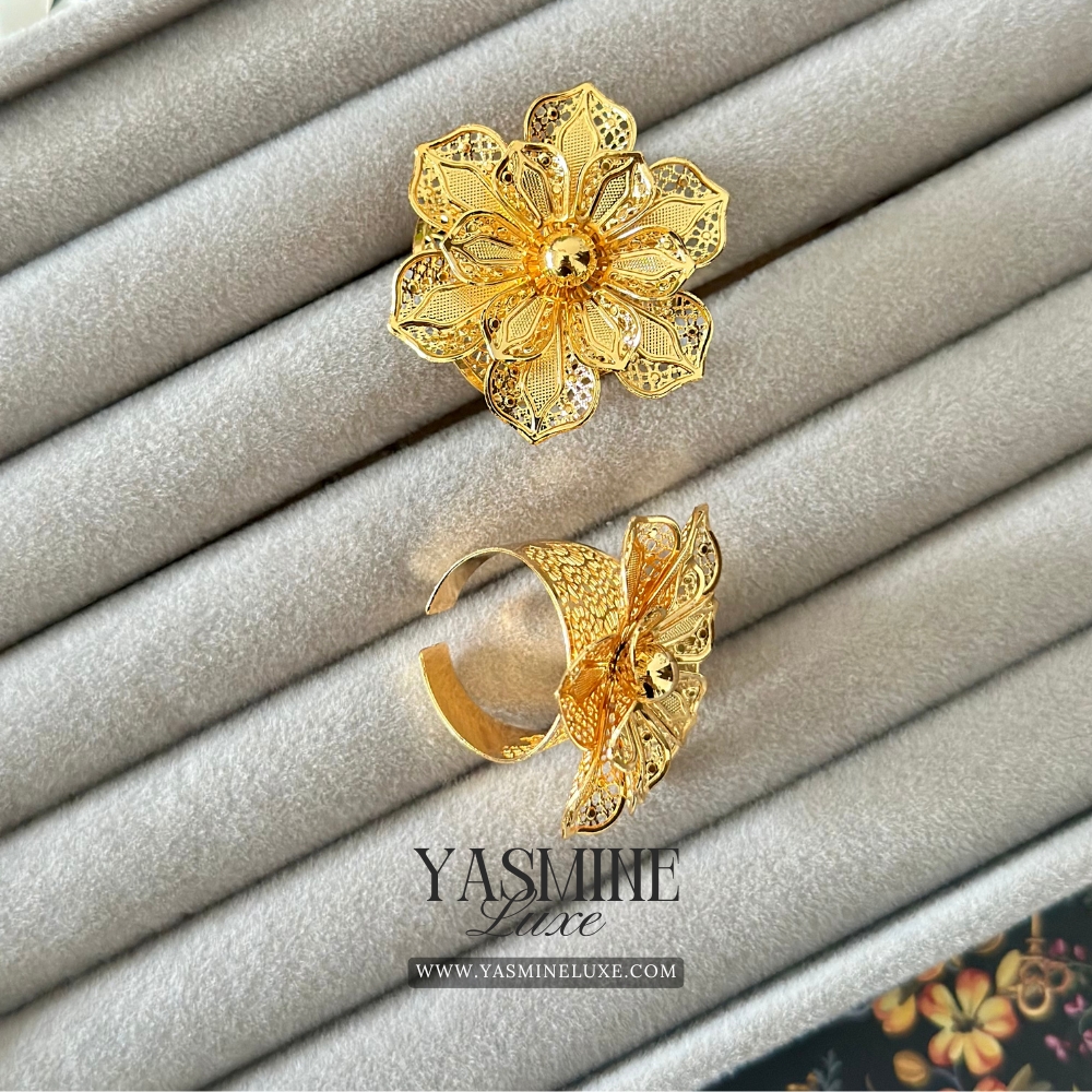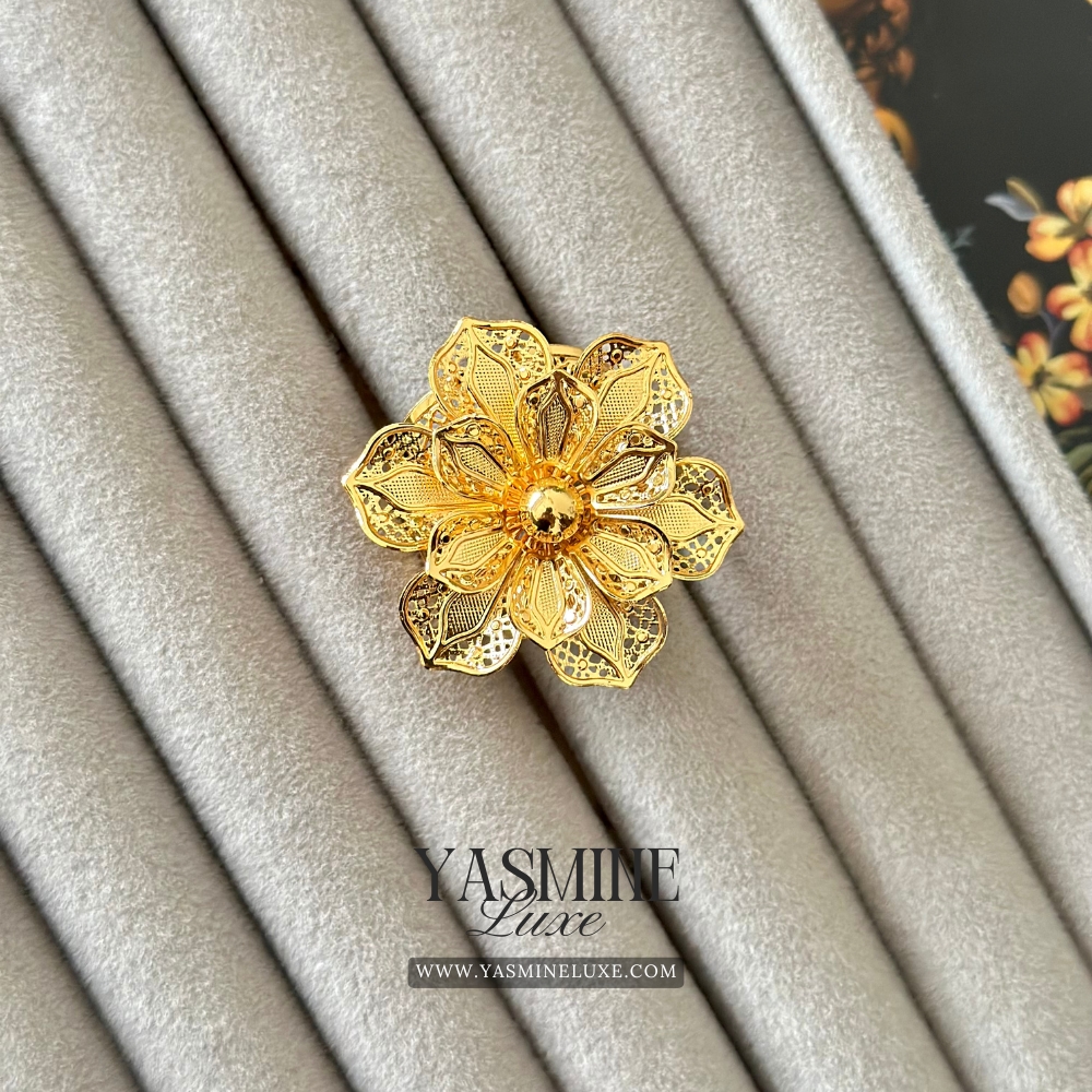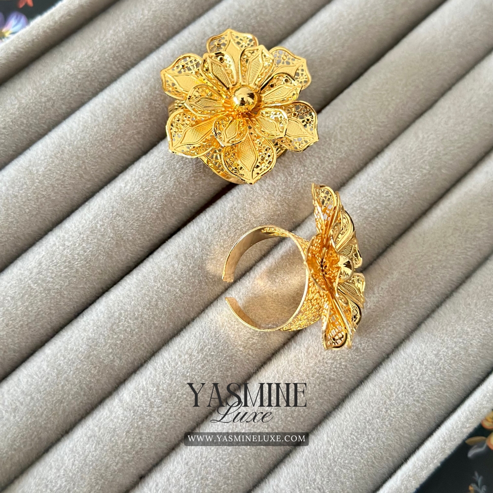 Golden Filigree Blossom Ring (Adjustable Ring)