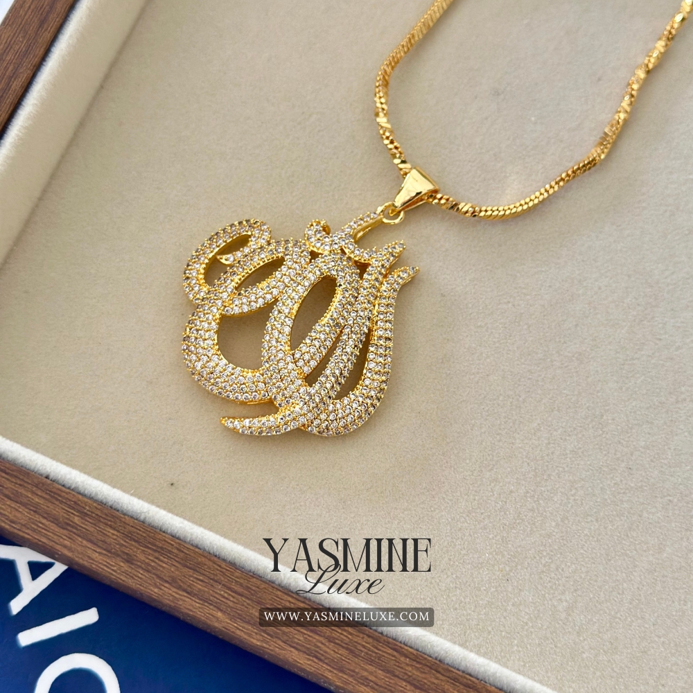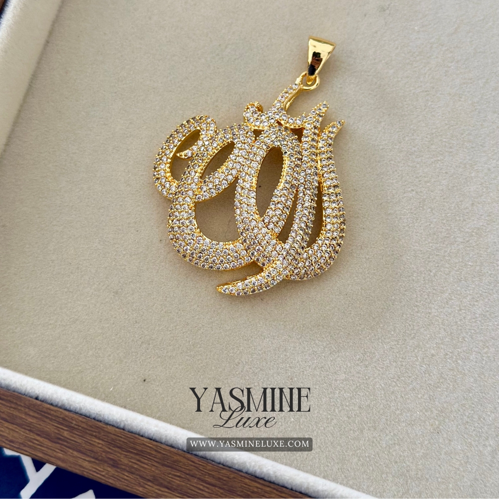 Sparkling 1 Carat Indian Made Gold Toned Zircon “Allah” Calligraphy Pendant